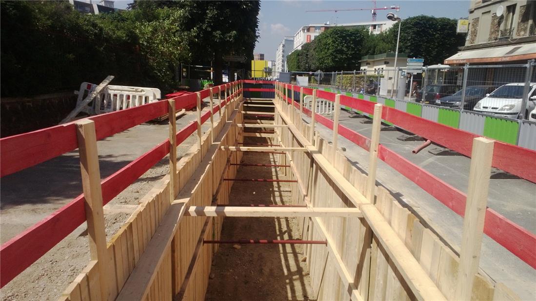 L’excavation se fait progressivement, avec un boisage ou un blindage systématique pour assurer la stabilité des parois et la sécurité des équipes.