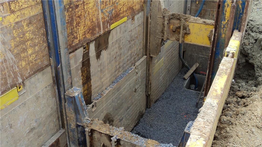 - Le béton est utilisé pour renforcer les parois lorsque les conditions exigent une stabilisation supplémentaire.
