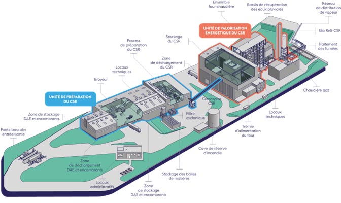 - Environ 40 emplois directs seront créés pour l’exploitation de la plateforme de préparation des CSR et de la chaufferie