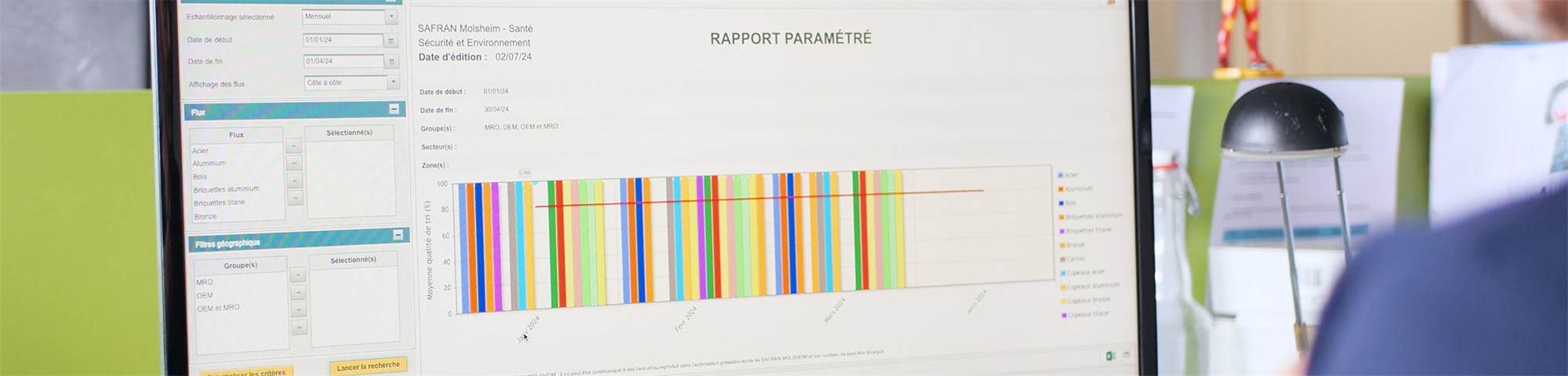 Selon des critères définis, il peut indiquer plusieurs niveaux de qualité de tri et justifier son estimation par une prise de photo ou la saisie d’un commentaire. Ces relevés sont consolidés sous forme de reportings dans une interface graphique très visuelle destinée au responsable de site ou du service.