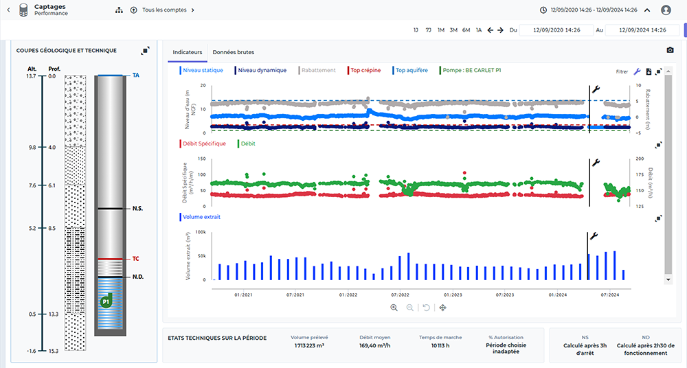 - Suivre la productivité des forages : analysez et suivez le débit spécifique pour maximiser la performance de vos installations.
