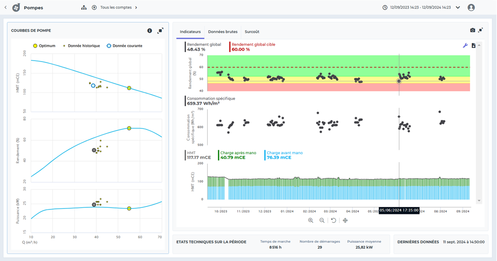- Optimiser le rendement des pompes : comparez le rendement réel des pompes avec les données constructeur pour des performances optimales.